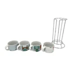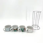 Pier 1 Imports Mug Set + Rack Coffee Cocoa Winter Holiday Christmas Stoneware Stackable Each mug is 3.5" by 2.5" Rack is 10" Tall and 5.5" across the bottom base. Very good condition, see all pictures for views. Ships out same day or next open postal day. Thank you for your purchase, we appreciate you!