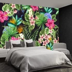 - Pink Floral Tropical Botanical Wallpaper Green Plant Leaf Wall Mural for Li...