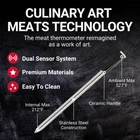 The ideal choice for indoor and outdoor cooking enthusiasts. MEATER Plus is 100% wire-free, allowing you to cook with complete freedom and flexibility. This Long Range Model features Bluetooth 5 with a range over 1000ft. (330m) open air, direct-line-of-sight. With walls and obstacles like a typical home, the average range is 165ft. (50m). You can easily monitor your cooking progress using the free app, which is available for both iOS (version 12.2.0 and later) and Android (version 8.0 and later) smartphones and tablets. Please note that the smart phone is not included in the package. The perfect gift for the chef in your life. Whether it's for your husband, dad, brother, wife, mother, sister, or a food-loving friend, this versatile kitchen gadget is a must-have for anyone who likes to BBQ or is a home chef in the kitchen. Achieve perfect results every time with this high-precision thermometer that takes the guesswork out of cooking. 2 Sensors, 1 Probe. The dual temperature sensors on this meat thermometer enable you to monitor both the internal meat temperature (up to 212°F) and the ambient/external temperature (up to 527°F) at the same time. This means you can achieve the perfect level of doneness for your meat, while also ensuring that your grill or oven is operating at the right temperature. And when it comes to cleaning up, you'll appreciate the fact that this thermometer is dishwasher safe. Say goodbye to guesswork with our Guided Cook System. This innovative feature in the app walks you through each stage of the cooking process, ensuring perfect and consistent results every time. You can even set up custom alerts and notifications based on temperature and/or time to keep you on track. The algorithm can estimate the ideal cooking and resting times for your food, taking the stress out of meal planning and allowing you to sit back and relax while your meal cooks to perfection. Extend your wireless range over WiFi with MEATER Link. All you need is a 2nd smart phone/tablet to bridge the connection to your home WiFi network. Stainless steel, water resistant, and easy to clean. Bluetooth 4.0 wireless connection. Max internal temp: 212°F. Max ambient temp: 527°F. Bamboo Block Charger: The stylish bamboo block not only holds your MEATER probe but also serves as the charger, ensuring your wireless meat thermometer is always ready for use. Product Description The Smartest Meat Thermometer MEATER works by using advanced algorithms and a dual sensor system to monitor both the internal and ambient temperatures of your meat. It can accurately estimate the remaining cooking time and suggest when to remove the meat from the heat to rest before serving. Remove the guesswork from cooking and achieve consistent results every time. Longer Range Don't let wires let in the way. Cut the cord and get extended range with built-in Bluetooth repeater Zero Guess Work MEATER can estimate how long to cook your food to get perfect results every time. Restaurant Quality Cook chef inspired meals without paying premium restaurant prices, in the comfort of your home. Peace of Mind Sit back, relax, the MEATER app will notify you when your food is ready, Wherever you are! 1 No Wire. No Fuss. 2 Zero Guess Work 3 Restaurant Quality 4 Peace of Mind Simple to Set Up Don't worry about overcooking or undercooking ever again. Receive Alerts Check your cooking status and get notified on your smart devices. Estimated Cook Time Estimates how long to cook and rest your food to help plan your meal and manage your time anywhere. Multiple Proteins at Once Cook different meats at various temperatures at the same time. 1 Simple to Set Up 2 Receive Alerts 3 Estimated Cook Time 4 Multiple Proteins at Once Precision cooking on all major appliances. Outdoor Cook MEATER wirelessly connects to your phone and guides you through the entire cook process, allowing you to remotely monitor your meat temperature. Make outdoor cooking a breeze with any appliance. Indoor Cook MEATER provides real-time temperature monitoring, ensuring perfectly cooked meals every time. Its wireless range allows you to move around the house freely, while keeping an eye on the cooking progress through the app. MEATER PLUS COMPARE MEATERS Bluetooth 5 Range Booster WiFi Up to 1000 ft. Open Air Range WiFi/Cloud Range Up to 165 ft. Typical Home Range WiFi/Cloud Range WiFi bridge needed Cloud Connectivity Built-in App-Free Monitoring Bluetooth 5 Range Booster None Up to 1000 ft. Open Air Range Up to 200 ft. Up to 165 ft. Typical Home Range Up to 33 ft. WiFi bridge needed Cloud Connectivity WiFi bridge needed App-Free Monitoring MEATER BLOCK ORIGINAL MEATER Roasted Chicken Never serve a dry bird again. Lamb Tenderloin Also amazing for juicy tenderloins. Cowboy Ribeye The tastiest BBQ steak to come off your grill. Whole Salmon Cooking a whole fish has never been easier. 1 Roasted Chicken 2 Lamb Tenderloin 3 Cowboy Ribeye 4 Whole Salmon