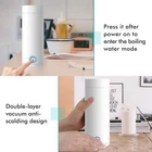 Feature This Portable Electric Kettle only takes 6 minutes to boil water. (Dorms are also available) It has the function of heat preservation. Larger capacity: 400ml (Note: when boiling water, water can only be added to the inner protruding line, about 400ml) Waterproof protection design Separate power cord. Non-slip insulated bottom. 3in1, can be used as a kettle, thermos cup and water cup. Small in size, suitable for travel, business trips, and carry around. The inner tank and top cover in direct contact with water are made of high-quality food-grade 304 stainless steel. Simple and Elegant Comfortable to use It can pour water 360�. Seamless integrated liner, with a diameter of 6cm spout, easy to clean the liner. Double-layer vacuum anti-scalding design: even if the inner pot is 100�C high temperature, the outside of the kettle does not exceed 50�C, and the heat insulation is not hot to the hand, and it can also keep warm.