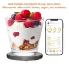 Ultra-portable, travel size, pocket, Bluetooth, display-free, USB-rechargeable, food scale. Logs 30 micros and macros from restaurant, packaged, and natural foods to your diet record. Diet transcripts automatically sent to doctor, dietician, friends, and/or family each month when used with the Gourmetmiles app with Gourmetmiles+ subscription. Save meal preps, smoothies, protein shakes, etc. to your saved recipes. Tap recipe name to access nutrition and health data. Then weigh exact serving amount using your . Tracks calories, protein, carbs, fiber, fat, saturated fat, sugar, added sugar, trans fat, cholesterol, calcium, iron, magnesium, phosphorus, potassium, sodium, zinc, vitamin A, vitamin E, vitamin D, vitamin C, thiamin, riboflavin, niacin, vitamin B6, vitamin B12, choline, vitamin K, folate, and caffeine when used with the Gourmetmiles app. Add multiple ingredients to a plate, bowl, or cup without weighing each item individually. tallies up total nutriton values and adds to your dietary record. Alerts on dietary excesses and deficiencies when used with the Gourmetmiles app. Weighs in ounces (oz), grams (g), milligrams (mg), pounds (lbs), and milliliters (ml). Weighs up to 11 pounds of food. Precision balanced. Accurate to 100 milligrams. Long lasting, extended life, USB rechargeable battery. Only requires re-charging every 5 months with regular use.