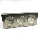 This Pottery Barn desk clock features three time zones and a sleek brushed nickel finish. With a square shape and analog display type, this clock is battery powered and runs on quartz movement. It is ideal for adults who need to keep track of time in different time zones, and it is an original piece from the Around The World product line. The clock is made of metal and has a silver color, with Arabic numerals and a time zone character family. This clock is perfect for a home office or any desk, and has mounting holes to hang from a wall. Clock requires 3- AA Batteries Finish imperfections at rear and top. See pictures.