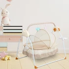 Description If you are a mother who is tired of coaxing your baby to sleep, quieting your crying baby down, or having little time for yourself, this baby cradle swing will be the good news for you. With its multiple functions, premium materials, high safety, and various control methods, this cradle swing can give your baby a comfortable sleep and a pleasing paradise of playing. Embrace it, and free your hands now! Details Anti-skid Footpads: The anti-skid footpads can make the cradle swing more stable without slipping and prevent it from scratching the floor. Bottle Stand: It allows for convenient placement and fetch of the feeding bottle. Puzzle Toy Rack: The puzzle toy rack with two adorable toys can effectively exercise the baby's vision and hand dexterity. U-Shaped Pillow: Our U-shaped pillow filled with cellucotton has enough elasticity to effectively reduce the possibility of deviated head and flat head. Breathable Mosquito Net: The semi-thickened fully enclosed mosquito net can protect the baby from direct sunlight and mosquito bites. USB Cable: The equipped 5.9ft USB cable allows you to connect this product to a power supply at home or use a power bank for charging outside at a wider distance.