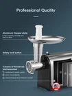【Potente y Rápida】La picadora de carne cuenta con un potente motor (300W, 3200W de potencia máxima bloqueada). Le ayuda a moler grandes cantidades de carne en menos tiempo, facilitando su preparación durante la temporada alta de caza. Perfecta para carne de res, pollo, cerdo, venado, pescado y más. 【Asistente de Cocina Versátil 3 en 1】La picadora de carne no solo prepara salchichas y kibbeh tradicional, sino que también procesa diversas carnes. Ya sea bratwurst, chorizo picante, salchicha de pollo, salsa boloñesa, albóndigas o hamburguesas, la picadora le ayudará a prepararlo fácilmente. 【Más Saludable y Segura】La picadora de carne eléctrica está fabricada con materiales de grado alimenticio y acero inoxidable de alta calidad. Equipada con un motor 100% de cobre puro, tiene una mayor vida útil. La picadora de carne puede procesar fácilmente diversas carnes y verduras. La perilla de bloqueo y la protección contra sobrecargas brindan seguridad de uso. La picadora de carne se apagará si se produce sobrecalentamiento o sobrecarga.