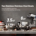 3.5QT+6QT Two Mixing Bowls: Our kitchen mixer is equipped with both 3.5QT and 6QT food-grade stainless steel bowls, perfect for a variety of mixing and baking tasks, from whipping cream to kneading dough for larger recipes. The innovative nested design allows the two bowls to fit neatly together, providing a compact storage solution that saves space while keeping your kitchen organized. 6+ Pulse Settings for Every Recipe: The precise 6-speed control covers all your mixing needs, from gently whipping meringues to powerfully blending thick doughs. Its strong planetary mixing action ensures even results, while the pulse function adds bursts of power for breaking down chunks and avoiding overmixing. 600W High-Performance Motor: Equipped with a 600W high-performance motor, our mixer for baking handles tough mixing and kneading with ease, saving you time and effort. The low noise level (≤75db) ensures a quiet operation, while the built-in temperature sensor automatically shuts off the mixer if it overheats, providing added safety and durability. Dishwasher-Safe Accessories: The upgraded food-grade Teflon coating ensures our dough hook, whisk, beater, and two stainless steel bowls are safe for both dishwasher cleaning and hand washing. Non-toxic and BPA-free materials prioritize your family’s health. Note: The pouring shield is NOT dishwasher safe. Excellent Gift & Reliable Service: This mixers kitchen electric stand mixer makes an ideal gift for baking enthusiasts and home chefs. Its sleek design and powerful performance make our dough mixer a must-have in any kitchen. We stand behind our product and offer prompt, professional support. For any questions or concerns, feel free to reach out to us anytime!
