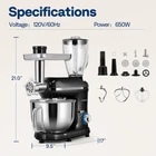Stand Mixer 6QT 7.5QT 6/10-Speed 660W Tilt-Head Kitchen Electric Food Mixer About 6qt Stand Mixer: POWERFUL MOTOR - High-performance 660W motor finishes kneading and mixing quickly and thoroughly than human hands; Handy 10-speed control with a pulse function can satisfy precise needs for various mixing tasks; Heavy-duty metal gears lead to stable and quiet working; Features 2 heat vents outlets, the mixer has a rapid heat dissipation for long service life SAFE &STURDY BOWL - Made of food-grade stainless steel, it ensures the health of the whole family; Large 6QT capacity meets daily kitchen requirements; The bowl can be fixed to the base, which makes it stay steady during mixing work; Considerable design of a handle will facilitate your operation; With suction cups on the bottom of the base, the kitchen mixer won’t move all over the counter DURABLE ATTACHMENT SET - Comes with 4 durable multipurpose accessories: stainless steel wire whisk, aluminum dough hook, mixing beater coating with Teflon, and an egg yolk separator; These different tool accessories match various kitchen needs, such as making dough, biscuits, pastries, muffins, waffles, etc.; Notice: The attachments are not dishwasher safe TILT-HEAD SHIELD - The tilt-head design makes bowl and attachments easy to install and detachable; See-through cover for process monitoring or water checking; Convenient to pour water, milk, or other liquid ingredients when needed through the hole on the splash-proof shield; Ingredients won't come out of the bowl makes cleaning up the kitchen much easier PERFECT GIFT IDEA - The multi-functional stand mixer looks sleek and smart in the kitchen and will be welcomed by those who love cooking as a great gift or for housewarmings, weddings, Christmas, anniversaries, or birthdays; It saves time and hard work by planetary mixing track, serving as a practical and portable kitchen helper Product Specification: Note: The attachments are not dishwasher safe Package include: Voltage/Frequency: 120V/60Hz 1 x Stand Mixer Power: 660W 1 x Dough Hook Capacity: 6 QT 1 x Beater Color: Silver 1 x Whisk Material: Alloy Steel, Aluminum, Plastic 1 x Egg Yolk Separator About 7.5qt Stand Mixer: POWERFUL MOTOR - High performance 660W motor finishes kneading and mixing quickly and thoroughly than human hands; Handy 6-speed control with a pulse function for all your food tasks or recipe preparation needs STURDY & SAFE BOWL - Food-grade stainless steel bowl with fine polish, durable and safe, ensures the health of you and your family; large 7.5 QT capacity meets normal kitchen needs and easily makes cakes, breads, cookies, salad dressing, etc. ATTACHMENT SET - Comes with 3 multipurpose accessories: aluminum dough hook, stainless steel wire whisk and aluminum mixing beater; Different tool accessory matches various kitchen needs, such as making dough, biscuits, pastries, muffins, waffles, etc. TILT-HEAD SHIELD - The tilt-head design makes bowl and attachments easy to install and detachable; Able to see through the cover allow for process monitoring or water checking; Pour water, milk or other liquid ingredient anytime through the hole on splash shield PERFECT GIFT IDEA - The multi-functional stand mixer looks great in the kitchen and will be welcomed by your friends, loved ones and family as a housewarming gift or for weddings, Christmas, anniversaries or birthdays; Conveniently saves time to serve as a great kitchen helper for those who love cooking Product Specifications: Color: Silver / Red / Champagne Item Dimensions: 17.3 x 10.6 x 4.6 inches Voltage: 120 V Package Weight: 15.7 lbs. Frequency: 60 Hz Package Dimensions: 17.7×10.8×16.7 inches Power: 660W Package Includes: Bowl Capacity: 7.5QT 1 x Stand mixer Material: ABS, Steel, Aluminum 1 x Wire Whisk Item Weight: 13.2 lbs. 1 x Mixing Beater Notice: The attachments are not dishwasher safe 1 x Dough Hook About 3 IN 1 6qt Stand Mixer: VERSATILE MACHINE - The all-in-one chef machine comes with multiple useful functions including blender, meat grinder and juicer; A variety of accessories help you achieve the results you need for any recipe; Empty juicer (i.e. without items to juice or water to clean) is NOT ALLOWED to run POWERFUL MOTOR - The vibrant red exterior of this stand mixer hides a high performance 650W motor that finishes kneading, mixing, and mincing quickly and thoroughly; Handy 6-speed control function for all your food tasks or recipe preparation needs ATTACHMENT SET - Comes with 3 multipurpose accessories: aluminum dough hook, stainless steel wire whisk and aluminum mixing beater; Whisk is able to quickly whip egg whites and frosting while the dough hook mixes and kneads dough with ease; Can quickly and thoroughly mash potatoes LARGE SPACE SAVING BOWL - 6QT mixing bowl with handle allows for large capacity making of cakes, breads, cookies, etc.; The tile-head shield lets you add ingredients without making a mess; Easily set up and dismantling satisfies a multi-functional device in a relatively small space PERFECT GIFT IDEA - The multi-functional stand mixer with a beautiful appearance will look great in the kitchen and surprise your friends, lover and family as a gift for housewarmings, weddings, Christmas, anniversaries or birthdays; Start enjoying hand-made foods and impress your guests with your culinary creations included components: 3 in 1 Blender Product Specifications: Notice: The attachments are not dishwasher safe Material: ABS, Steel, Aluminum Voltage/Frequency: 120 V/60 Hz Item Weight: 17 lbs. Power: 650 W Item Dimensions: 18.5 × 9.3 ×21.1 inches Capacity: 6 QT Package Weight: 19.8 lbs. Color: Silver / Red Package Dimensions: 22.2 ×10 ×14 inches About 6 IN 1 6qt Stand Mixer: POWERFUL PERFORMANCE - The stand mixer is equipped with a 660W pure copper motor that kneads and mixes more quickly and thoroughly than human hands, making it capable of handling all your requirements; Its 360° planetary mixing and stirring mechanism ensures mixer attachment