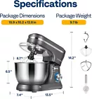 Stand Mixer 6QT 7.5QT 6/10-Speed 660W Tilt-Head Kitchen Electric Food Mixer About 4.75qt Stand Mixer: STURDY & SAFE MATERIAL: Crafted from food-grade stainless steel and ABS housing, this electric stand mixer is not only durable but also resistant to corrosion, ensuring long-lasting use and food safety; Its sleek, compact design adds both style and functionality to your kitchen without taking up much space; Makes a great housewarming gift or present for weddings, Christmas, or birthdays POWERFUL MOTOR: Equipped with a high-performance 380-watt motor, this stand mixer ensures effortless and consistent whipping, beating, kneading, and thorough mixing; The all-metal gears provide stability and quiet operation (noise level ≤ 76dB); The planetary mixing design moves the beaters around the bowl for even and thorough mixing 8 SPEED SETTINGS & LED INDICATOR: Handy 8-speed control meets the precise needs of various mixing tasks; Whether you’re mixing fine flour, thick dough, or eggs, you’ll find the right speed; The pulse function delivers powerful bursts for better control, ideal for breaking down large chunks and preventing overmixing; The mixer includes an LED power indicator to help you select the correct speed; Suction cups on the base keep the kitchen mixer securely in place SPACIOUS 4.75-QUART CAPACITY: The 4.75 QT mixing bowl offers ample capacity for family-sized meals or baking projects; The bowl secures to the base for stability; The tilt-head design allows for easy installation or removal of bowls and attachments; When the mixing head is lifted, the mixer immediately turns off for safety; The removable splash guard makes adding ingredients easy while preventing flour from splattering MULTIFUNCTIONAL ATTACHMENTS: Includes 4 durable, multipurpose accessories: a stainless steel wire whisk, an aluminum dough hook, a mixing beater, and an egg yolk separator; These versatile tools meet various kitchen needs, from making dough to preparing biscuits, pastries, muffins, and waffles; All attachments, except for the lid, are dishwasher-safe for quick and easy cleaning Product Specifications: Voltage/Frequency:120V/60Hz 1 x Stand Mixer Power:380W 1 x Dough Hook Capacity:4.75QT 1 x Beater Color:Silver / Gray / Black / Red / Blue 1 x Whisk Material:Alloy Steel, Aluminum, Plastic 1 x Egg Yolk Separator Package Included: 1 x Bowl Cover About 6qt Stand Mixer: POWERFUL MOTOR - High-performance 660W motor finishes kneading and mixing quickly and thoroughly than human hands; Handy 10-speed control with a pulse function can satisfy precise needs for various mixing tasks; Heavy-duty metal gears lead to stable and quiet working; Features 2 heat vents outlets, the mixer has a rapid heat dissipation for long service life SAFE &STURDY BOWL - Made of food-grade stainless steel, it ensures the health of the whole family; Large 6QT capacity meets daily kitchen requirements; The bowl can be fixed to the base, which makes it stay steady during mixing work; Considerable design of a handle will facilitate your operation; With suction cups on the bottom of the base, the kitchen mixer won’t move all over the counter DURABLE ATTACHMENT SET - Comes with 4 durable multipurpose accessories: stainless steel wire whisk, aluminum dough hook, mixing beater coating with Teflon, and an egg yolk separator; These different tool accessories match various kitchen needs, such as making dough, biscuits, pastries, muffins, waffles, etc.; Notice: The attachments are not dishwasher safe TILT-HEAD SHIELD - The tilt-head design makes bowl and attachments easy to install and detachable; See-through cover for process monitoring or water checking; Convenient to pour water, milk, or other liquid ingredients when needed through the hole on the splash-proof shield; Ingredients won't come out of the bowl makes cleaning up the kitchen much easier PERFECT GIFT IDEA - The multi-functional stand mixer looks sleek and smart in the kitchen and will be welcomed by those who love cooking as a great gift or for housewarmings, weddings, Christmas, anniversaries, or birthdays; It saves time and hard work by planetary mixing track, serving as a practical and portable kitchen helper Product Specification: Note: The attachments are not dishwasher safe Package include: Voltage/Frequency: 120V/60Hz 1 x Stand Mixer Power: 660W 1 x Dough Hook Capacity: 6 QT 1 x Beater Color: Silver 1 x Whisk Material: Alloy Steel, Aluminum, Plastic 1 x Egg Yolk Separator About 7.5qt Stand Mixer: POWERFUL MOTOR - High performance 660W motor finishes kneading and mixing quickly and thoroughly than human hands; Handy 6-speed control with a pulse function for all your food tasks or recipe preparation needs STURDY & SAFE BOWL - Food-grade stainless steel bowl with fine polish, durable and safe, ensures the health of you and your family; large 7.5 QT capacity meets normal kitchen needs and easily makes cakes, breads, cookies, salad dressing, etc. ATTACHMENT SET - Comes with 3 multipurpose accessories: aluminum dough hook, stainless steel wire whisk and aluminum mixing beater; Different tool accessory matches various kitchen needs, such as making dough, biscuits, pastries, muffins, waffles, etc. TILT-HEAD SHIELD - The tilt-head design makes bowl and attachments easy to install and detachable; Able to see through the cover allow for process monitoring or water checking; Pour water, milk or other liquid ingredient anytime through the hole on splash shield PERFECT GIFT IDEA - The multi-functional stand mixer looks great in the kitchen and will be welcomed by your friends, loved ones and family as a housewarming gift or for weddings, Christmas, anniversaries or birthdays; Conveniently saves time to serve as a great kitchen helper for those who love cooking Product Specifications: Color: Silver / Red / Champagne Item Dimensions: 17.3 x 10.6 x 4.6 inches Voltage: 120 V Package Weight: 15.7 lbs. Frequency: 60 Hz Package Dimensions: 17.7×10.8×16.7 inches Power: 660W Package Includes: B