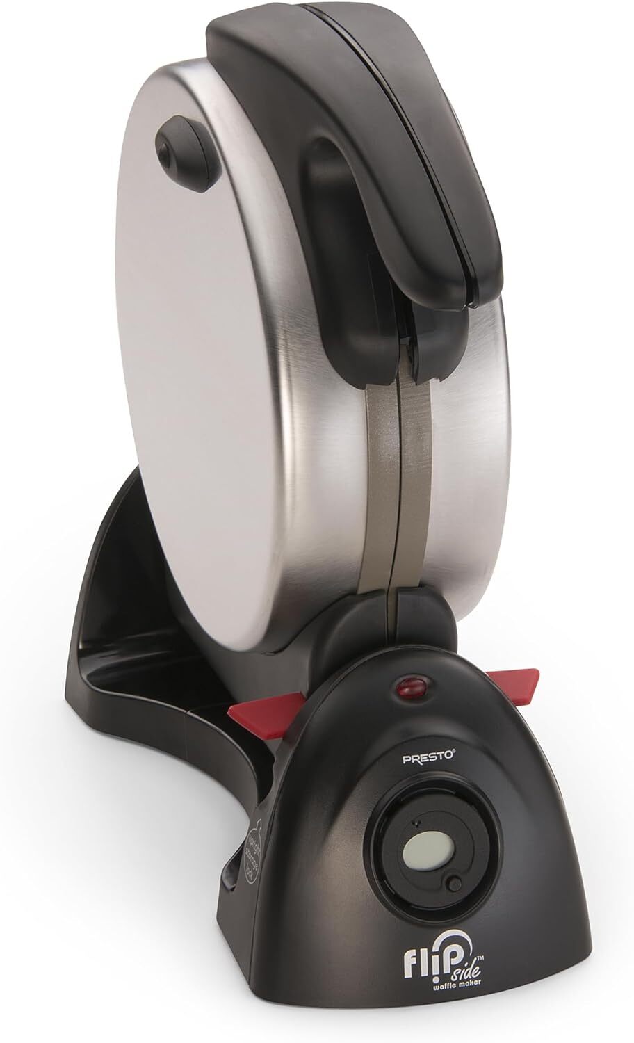 Presto Ceramic Flipside Belgian Waffle Maker, 7 inches (Pack of 1), BlackGray Product Details Product Dimensions: 11.25 x 11.75 x 4 inches Item Weight: 4.94 pounds Department: Small Appliances Manufacturer: Presto Country of Origin: China Item model number: 03510 Batteries: 1 Lithium Ion batteries required. (included) Is Discontinued By Manufacturer: No PROFESSIONAL FLIP WAFFLE MAKER: This Belgian waffle maker features a professional-style rotating design, ensuring perfectly cooked waffles every time. The flip waffle maker evenly spreads batter for deliciously crispy exteriors and tender interiors EXTRA-THICK BELGIAN WAFFLES: Bakes extra-thick, 7-inch diameter waffles with four easy-to-cut sections. Enjoy restaurant-quality Belgian waffles at home in just minutes with this high-performance waffle maker CERAMIC NONSTICK GRID: The nonstick waffle maker is equipped with a ceramic grid that easily wipes clean, making post-breakfast cleanup a breeze. Say goodbye to stuck-on batter and enjoy hassle-free maintenance. COOL-TOUCH HANDLES: Designed with your safety in mind, this flip waffle maker features cool-touch handles, allowing you to easily rotate the waffle maker COMPACT STORAGE: The dual-function base provides smooth 180° rotation and locks in a vertical position for compact storage, making this Belgian waffle maker perfect for any kitchen, big or small Bake extra thick Belgian waffles in minutes. A unique rotating design lets you flip this waffle maker 180 degrees to evenly spread batter for delicious waffles that are crispy outside and tender inside. An extra-thick nonstick grid makes a 7-inch diameter waffle with four easy-to-cut sections.1100 Watts.
