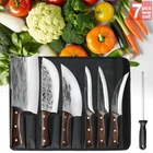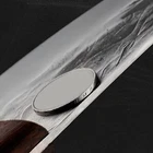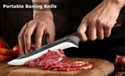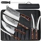 High-carbon stainless steel blade-It is manufactured from high-quality stainless steel that maintains its functionality for a long time. And to boost its sturdiness, the steel contains 0.6-0.75 carbon. This makes it two times as hard as other knives in its class as they contain about 0.3% carbon Multi-functional knife-The gyutou knife is classified and designed to be multipurpose knife for professional applications .It cuts,dices,slices,chops and also cuts meat off bones. It comes with a HRC( Rockwell Hardness Scale) of 52-56 which makes it among the tough knives in its class Ergonomic color wood handle- To make it more professional and minimize any fatigue, finger numbness or aches after holding it continuously for an extended time the knife's handle is made from color wood . This is material that originates from Africa and its known for its comfort, strength and stability Ultra-sharp edge- Sharpness is key to achieving the best cuts and this is evident in the knife's blade which is quite sharp and will remain this way even after tough tasks such as cutting tough meat or removing flesh from bones. The sharpness is further boosted by use of the latest German engineering Corrosion and anti-tarnish blade- In addition to carbon, 16-18% chrome is also included in the blade's metal composition. This gives its a glossy finish which will not fade or tarnish even after using it for a long time 7 piece set, with it, your kitchen is more complete! 12 inch Chopping knife 11.7 inch Multi-purpose knife 11 inch Butcher's knife 10 inch Boning knife 10 inch Dividing knife 10 inch Hook knife Sharpening rod Tips: The blade is 7CR17 stainless steel, the surface of the laser Damascus pattern, very beautiful, good workmanship, razor sharp, keep your kitchen away from the blunt knife, and enjoy your kitchen life! Caution: 1.Blades are really sharp, please take care and keep it away from kids. 2.Hand washing is recommended to keep knife’s lifespan. 3.Please clean thoroughly and dry after each use.