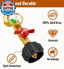 Propane Refill Adapter with Valve and Gauge, Fill 1 Pound Bottles from 20Lb Tank, Fits QCC1 / Type1 Propane Tank and 1 Lb Throwaway Disposable Cylinder Propane Bottle Connector Effortless Refilling - The 90-degree elbow design facilitates smooth gas flow to smaller cylinders, allowing for easy attachment to large tanks and 16oz tanks, enabling refills in just one minute. Enhanced Design - Equipped with a propane ON-OFF control valve, this adapter minimizes gas leaks during cylinder connections, allowing for safe and controlled refilling. Rapid Monitoring - Swiftly assess the remaining gas in your large tank to avoid any inconvenience caused by insufficient gas levels during the refilling process. Secure Construction - The corrosion-resistant solid brass material ensures superior sealing, while the integrated safety features effectively mitigate the risk of overfilling gas cylinders. User-Friendly Functionality - Refill your 1-pound bottles multiple times without the need for tools, ultimately reducing the expense associated with purchasing new green propane gas cylinders. Product Description CALPOSE Propane Refill Adapter, Fill 1 Pound Bottles from 20lb Tank, Fits QCC1 / Type1 Propane Tank and 1 lb Throwaway Disposable Cylinder Specifications Fuel Type: Propane Material: Solid Brass Upgrade:with valve and gauge Inlet: QCC-1 Outlet: 1"-20 Female Throwaway Cylinder Installation Steps Step 1. Screw the propane refill adapter on the big tank. Step 2. Screw the 1lb propane tank on the adapter. Step 3. Flip the big tank over, then open the valve and it starts refilling. Note: ONLY used for outdoors. Valve Type Ball Valve Part Number PRA2 Item dimensions L x W x H 1.5 x 1.5 x 2.5 inches Power Source propane Color Golden Material Brass Country of Origin China Batteries Required? No Item Weight 8.1 ounces Number of Ports 2 Batteries Included? No Outlet Connection Type Threaded Item model number PRA2 Exterior Finish Brass Product Dimensions 1.5 x 1.5 x 2.5 inches Shipping Fast shipping is very important for us. Our standard US shipping service is FREE. Your order will be shipped within 2-3 business days upon full payment received. Your order will be delivered within 2-3 business days after the handling time. We only ship to the confirmed PayPal address. We reserve the right to cancel any order for any reason at any time. We are not responsible for undeliverable addresses. Returns and payment We offer a 30 days return policy from checkout winning date. We allow only PayPal as payment method FeedBack Your feedback very important to us, after you get your package and you are satisfied with our service please leave us positive feedback If you have any problem with your order / any questions please before leave any type of feedback Please visit our eBay store to check out other items for sale! Thank you for shopping at our store.