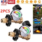 2 Pack Propane Tank Adapter with Upgraded Propane Tank Gauge, Converts POL LP Tank Service Valve to QCC1 / Type 1, Old to New Connection Type 2 Pack Propane Tank Adapter: Converts POL LP Tank Service Valve to QCC1 / Type 1 (Old to New Connection Type) Upgraded Gauge: WADEO propane tank gauge can detect leaks and read fuel level at glance by the color coded dial outside. No need to install an extra gas gauge. The upgraded gauge can display ambient temperature change, which provides an accurate idea of how much propane remains. High Quality Material: This propane tank adapter with gauge is made of 100% solid brass, the brass construction make it not easily to break, durability to provide you with long service time, secure link and prevent leaks. Appliance: This propane tank gauge can be used for 5-100lb POL LP propane tank and propane appliances. Great for using gas grill, heater, smoker, camp stove, lantern, tabletop grill, fire pit table, turkey fryer and more propane appliances. Easy to install: No tools required, and it comes with handheld grip for tightening and dust cover included. Color Coded Dial The color coded dial of gas tank gauge can display accounts for ambient temperature change and detect dangerous leaks . Red: Empty Yellow: Low Green: Sufficient Solid Brass Material This propane tank adapter with gauge is made of 100% solid brass, the brass construction make them not easily to break, durability to provide you with long service time, secure link and prevent leaks. Application This propane tank gauge can be used for 5-100lb POL LP propane tank and propane appliances. Great for using gas grill, heater, smoker, camp stove, lantern, tabletop grill, fire pit table, turkey fryer and more propane appliances. How to Detect Leaks To use it as a leak tester, you turn off all propane appliances, open and close the tank, then wait a while to see if the pressure goes down. If it does, you know you have a leak. NOTE: Will not read levels immediately: Begins working when propane is flowing. Warning!!! For your safety all propane appliances like gas grills, lanterns, heaters and stoves are outdoor use. Fully tightened at both propane tank side and grill side before using on your propane appliances to prevent leakage.