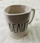 The Rae Dunn BEAUTY Large Letter Coffee Mug is part of the Artisian Collection and features a contemporary design with a white ivory color. Made of ceramic, this 20 fl oz round mug is ideal for all occasions. The mug showcases the word "BEAUTY" in large letters, adding a touch of elegance to your kitchen or dining area. Perfect for enjoying your favorite hot beverages in style, this novelty mug is a stylish addition to any home. Excellent Condition Please view photos for exact item condition