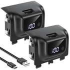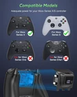 【Smart LED Digital Display】The latest smart LED digital display rechargeable battery pack for xbox series x/s shows the accurate battery level based on the percentage reading. No more guessing about the remaining power and when to charge, no more worrying about the xbox controller battery pack suddenly changing from medium power to 0%. 【Compatible for Xbox Series X/S Controller】Designed for Xbox Series X and Xbox Series S controllers. Compared with other battery packs that require of battery covers, this Xbox rechargeable battery pack and battery cover is a whole unit, no need to replace battery cover and no need to worry about lost. (Note: Not suitable for third-party Xbox controllers, not compatible with Xbox 360/One). 【2x5180 mWh Fast Charging Battery Pack】This rechargeable battery pack for xbox series x/s supports fast 5V high speed input, fully charged in just 3-4 hours. Equipped with 2x5180 mWh rechargeable batteries, each battery can provide up to 30 hours of continuous play time. Ensure that you can enjoy your gaming time for a long time without worrying about battery exhaustion. 【Safe Reliable Battery for Xbox】UL 2056, CE, RoHS, FCC certified manufacturing quality. Built-in intelligent safeguards, our rechargeable battery pack for xbox series x/s accessories protect your xbox series x/s against excessive current flow, overheating and overcharging, ensuring safety during charging at night. 【Play and Charge Kit for Xbox】What You Get: 2x5180 mWh rechargeable battery packs for xbox series x/s, 1x 1.5m (5ft) USB type-c charging cable, 1x user manual. With this 5ft USB type-c charging cable, you can choose 2 charging methods: while you play or direct to the battery pack for xbox controller. Enjoy uninterrupted gaming time without worrying about running out of power.