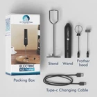 Introducing our Rechargeable Milk Frother Wand with Stand, an essential tool for any beverage enthusiast seeking cafe-quality drinks from the comfort of home or on the go. This innovative frother is equipped with a durable Stainless Whisk and offers 3-Speeds to cater to your frothing preferences, ensuring a creamy texture every time. Say goodbye to the hassle of disposable batteries with our rechargeable design, saving you money while also contributing to a more eco-friendly lifestyle. Whether you’re whipping up a morning latte or indulging in an afternoon matcha, our frother delivers quick foam generation, thanks to its high-speed rotation mechanism. Experience versatility like never before with our multifunctional frother. From frothing coffee to mixing matcha powder, protein shakes, milkshakes, and hot chocolates, the possibilities are endless. Its ergonomic and lightweight handle ensures comfortable handling, making it a breeze to use whether you’re at home or traveling. Cleanup is a breeze with our easy-to-use design. Simply press the button to start frothing and then rinse the stainless-steel whisk under running water for instant cleaning. Elevate your beverage experience with our Rechargeable Milk Frother Wand – the perfect companion for achieving frothy perfection wherever you go. Detachable whisk – This multifunctional whisk includes a dual-layer milk frothing head for creating creamy foam and a large beating head for preparing eggs. It’s easy to detach and install—simply align the notch with the arrow for a smooth setup. Adjustable Speeds: This milk frother features a high-efficiency motor with three speed settings, easily catering to varying froth needs. Whether making rich cappuccinos, smooth lattes, or quickly whipping up frothy foam, it handles it all effortlessly. Portable Rechargeable Design: Featuring a built-in rechargeable lithium battery, this frother eliminates the need for frequent battery replacements. Once fully charged, it offers extended use, making it perfect for enjoying your favorite frothy coffee at home, in the office, or while traveling. Versatile Applications: Not only is it great for coffee drinks, but it can also be used for making keto drinks, protein shakes, matcha, and more. It meets diverse beverage needs, allowing you to unleash your creativity in the kitchen. User-Friendly Design: The lightweight and portable structure, along with a comfortable grip design, makes it easy to operate and manage. Whether you’re a beginner or a coffee enthusiast, you can master it with ease, delivering a delightful frothing experience.