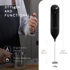 INNOVATIVE DESIGN: The hand frother for coffee features a 2-in-1 USB-C charging bracket that holds the mini mixer handheld hygienically and can be placed on a counter or wall. When placed in the bracket, the coffee mixer wand automatically charges USB-C FAST CHARGE: The handheld milk frother wand rechargeable features a built-in lithium battery, which can be fully charged in 2.5 hours, providing enough power to make more than 30 cups of milk foam RELIABLE PERFORMANCE: The handheld frother for coffee features an upgraded high-torque motor that delivers consistent performance without shakes, creates barista-quality foam in 15 seconds EASY TO USE & CLEAN: This hand held frother for coffee features a large ergonomic button for easy control of the stirring speed; the food-grade 304 stainless steel whisk can be submerged in water for quick cleaning VERSATILE: Not just for coffee, the electric frother handheld is also a versatile hand mixer for drinks, it's also great for matcha, hot chocolate, protein shakes, whipped cream, and more. Explore more with handheld mixer wand