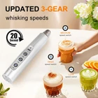 ☕【Environmentally friendly】Say goodbye to disposable batteries! Our milk frother adopts a USB charging design, which is more environmentally friendly and lighter than battery type, allowing you to charge anytime, anywhere without changing batteries. The built-in battery capacity is 1500mAh, and it can be used several times a day after being fully charged. 🥛【Stainless Steel Stirring Heads】This frother wand contains 3 detachable whisking heads, providing multiple frothing options. The hook stirrer of the coffee frother is suitable for mixing milk powder, protein powder, nutritional powder, oatmeal or other powdered objects. The spring stirrer is perfect for milk froth for latte and cappuccino. There is also a balloon mixer that can be used for beating eggs, cream, condensed milk or baking. Easily switch between uses, suitable for various kitchen use scenarios. 🍳【3-speed Settings】Handheld milk frother has three buttons of high/middle/low on the handheld frother main unit for you to control, to achieve the ideal foaming effect. our mixer electric handheld effortlessly creates creamy foam for coffee and blends beverages in 15-20 seconds without noise. Perfect for electric whisk coffee stirrer users who seek convenience and quality results. 🍵【Remaining Battery Reminder】The electric milk frother handheld has the function of an Indicator light to indicate battery level(low, medium, full), the remaining power is clear at a glance, and charging is reasonably, convenient in daily use. The drink mixer is a small, exquisite cylinder with a flat bottom. 🍰【High-Quality Rechargeable Frother】The coffee foam maker wand is made of food-grade ABS with an easy and comfortable grip an ergonomic handle and buttons. The built-in powerful low-noise motor brings strengthened speed rotation without disturbing your families and gives you a calm and tranquil morning. 🛎️【Tips】 Our electric hand mixer is very powerful. It is recommended to use a cylindrical container with a diameter of about 90-100mm and a height of no less than 110mm. Do not fill the container more than 1/3 full of milk, otherwise the milk may overflow from the container.