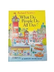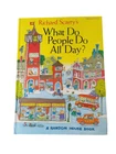 This is a vintage picture book titled "Richard Scarry's What Do People Do All Day?" by Richard Scarry. It was published in 2015 by Random House Children's Books and has 96 pages. The book is intended for ages 2-8 and features animals and transportation concepts. It weighs 26.1 ounces and measures 12.2 inches in length, 10.5 inches in width, and 0.5 inches in height. Some imperfect to outside shown in photo but the pages are all great . Awesome book .