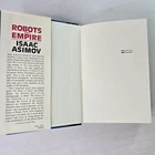 Robots And Empire by Isaac Asimov 1st Ed DJ/HC 1985 Science Fiction Fantasy Long after his humiliating defeat at the hands of Earthman Elijah Baley, Keldon Amadiro embarked on a plan to destroy planet Earth. But even after his death, Baley's vision continued to guide his robot partner, R. Daneel Olivaw, who had the wisdom of a great man behind him and an indestructable will to win.... A collector's books. They each have the name of the previous owner stamped &/or written on the face of the book and on the inside page/s. The photographs provided will give you the detail. The photographs are of the book/s listed and provide the detail. I post every day, Monday to Friday, excluding public holidays. Standard Parcel includes tracking and Express postage is available for an additional cost. Free Returns. International buyers to pay postage, any customs duties, and any return post.