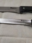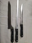 THANK YOU FOR VISITING OUR STORE. WE SHIP 6 DAYS A WEEK (UNLESS THERE IS A FEDERAL HOLIDAY). MOST ITEMS WILL SHIP IN A STURDY BOX AS NEEDED. PLEASE FEEL FREE TO REACH OUT IF YOU HAVE ANY QUESTIONS. WE WILL COMBINE SHIPPING WHEN AVAILABLE. Introducing the Ronco Showtime 3-Pc Six Star Knives set, perfect for any kitchen enthusiast. This set includes a carving knife, a boning knife, and a showtime knife, all made of durable stainless steel and featuring a comfortable plastic handle. The black color of the knives adds a sleek touch to any kitchen decor. Whether you're a professional chef or a home cook, this set is sure to meet all your knife needs. The Ronco brand is known for its quality products, and this set is no exception. Upgrade your kitchen with this must-have set of chef's knives.
