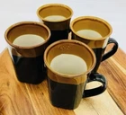 The Royal Norfolk Black & Brown Square Cocoa Coffee Mug set includes four 14 oz mugs made of stoneware. The square-shaped mugs stand 5 inches tall with a width of 3.5 inches, featuring a contemporary style with a solid black color and beach, nautical, and western themes. These mugs are suitable for hot beverages, microwave and dishwasher safe, making them ideal for all occasions. Each set includes Cappuccino Cup, Latte Mug, Coffee Cup, and Coffee Mug, perfect for enjoying your favorite drinks in a stylish and functional manner. Vintage style Royal Norfolk square stoneware coffee mug. Blue with brown band around rim. Capacity approximately 14 oz. Microwave and dishwasher safe. Approximately 5” tall x 3” long x 3” wide; 4 ½” wide (including handle).