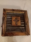 Enhance your living space with this exquisite handmade plaque featuring a rustic and primitive style. The plaque is made of high-quality wood with a metallic finish that gives it a unique and elegant look. It is adorned with a cross design that adds a touch of Christian symbolism to your home decor. This decorative piece is perfect for any room in your home, whether it's your living room, bedroom, or bathroom. It is ready to hang and features a framed design that makes it easy to display. The plaque's corrugated metal and wood burned features add to its rustic charm, making it the perfect addition to any home.
