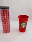 This Starbucks travel tumbler and holiday red cup combo is the perfect addition to any coffee and tea lover's collection. With a 16 ounce capacity, this tumbler is perfect for on-the-go sips, while the holiday red cup adds a festive touch to your Valentine's Day routine. Both feature a striking red color and the iconic Starbucks logo, making them a must-have for any Starbucks fan. Ideal for collectors or as a gift, this tumbler and cup combo is a great way to show your love for coffee and tea. Whether you're a Starbucks enthusiast or just looking for a fun and functional accessory, this tumbler and cup combo is sure to impress. Starbucks Holiday 2023 Red Cup Day (16 oz) Reusable Hot Cup Get ready for the holiday season with this limited edition Starbucks Red Cup Day hot cup. The 16 oz reusable cup features the iconic red cup design, perfect for any coffee or tea lover. This item is brand new and purchased at a Starbucks location on Red Cup Day (11/16/23). Celebrate the holiday season with this original Starbucks item, ideal for collectors and fans of the brand. The cup is adorned with the "Starbucks" logo and is perfect for use at home, work, or on-the-go. Don't miss out on this festive addition to your collection.