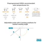 10-INCH LONG PROBE folds closed to store 15 PRESET TEMPERATURES for meat type and doneness per USDA recommendations ONE CUSTOMIZABLE OPEN SETTING BUILT-IN TORCH LIGHT for cooking in low light. EXTRA THIN PROBE TIP leaves smaller puncture hold in meat TEMPERATURE RANGE: 32°F to 212°F (0°C to 100°C) Ideal for master grillers or novice cooks, the Safe-Serve Instant Read thermometer is designed to keep hands at a safe distance from heat while ensuring meat is cooked to perfection for meat type and doneness.
