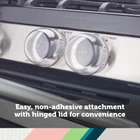Safety 1st Child Proof Clear View Stove Knob Covers (Set of 5) Product Details Material: Plastic Brand: Safety 1st Color: Clear Product Dimensions: 2.01"L x 3.03"W Exterior Finish: Plastic StyleHandle Type: ModernKnob ShapeFinish Type: RoundUnfinished These clear Safety 1st plastic covers install easily and fit over your stove knobs to keep children from turning them. Simply pop open the cover's hinged lid to access the knob when it's time to cook. Easily confirm whether a stove burner is on or off with the clear, see-through lids. Each knob is made from durable, heat-resistant plastic to resist wear and hold up to repeated use. These plastic safety covers feature a universal design and are oversized to fit the knobs of most modern appliances. This set includes five stove knob covers. Safety 1st Child Proof Clear View Stove Knob Covers are for indoor use only. Please note: Over time, some minor surface marks may appear under the cover, particularly on delicate finishes. Product Description Young children love to explore and find knobs fascinating. Help keep your stove knobs off-limits with the Clear View Stove Knob Covers from Safety 1st. These child-proof, clear covers help protect curious minds from danger while parents aren't looking. While the covers make it difficult for children to access the stove, parents can easily take the covers off. A hinged lid allows for easy adult access when needed – all you need to do is simply pop it open to access the knob when it's time to cook. To give you a clear indication that your stove knobs are safely in the off position, the covers are see-through. These stove knob covers are made from durable, heat-resistant plastic to resist wear and hold up to repeated use. Featuring a universal design, these plastic safety stove knob covers are oversized to fit the knobs of most modern appliances. (Safety 1st Clear View Stove Knob Covers are for indoor use only.) Please note: Over time, some minor surface marks may appear under the cover, particularly on delicate finishes. Brand Story By From the Manufacturer The Safety 1st plastic Clear View Stove Knob Covers are designed to help prevent kitchen accidents by prohibiting children from turning on the stove. The hinged lid allows parents convenient access to stove knobs, without removing the product. New larger size will accommodate today's stoves. See more