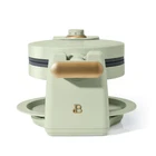 Product details Crush your brunch goals and serve the family light, fluffy and crispy on the outside Belgian waffles right at home with the Beautiful Rotating Belgian Waffle Maker. A powerful 100 watt heating system and easy-to-use rotating mechanism combine to cook five, evenly-cooked round 1”-thick restaurant-quality waffles in only 10 minutes. With seven adjustable browning control settings, you’re in control of cooking each waffle to just the right shade to please all your guests (or yourself!). The waffle plates feature a non-stick coating made without PFOA and PFOS for easy food release and clean up. Plus, its compact size (the handle rotates and folds in) and genius cord wrap makes storage simple. A ready indicator light and cool-touch handle round out the features of this must-have waffle maker. Available in Sage Green with signature gold accents. Condition: new. Makes five 1” thick restaurant-style Belgian waffles in under 10 minutes Rotates for evenly cooked waffles every time Seven browning settings cooks waffles to your preference Powerful 1000-watt heating system Non-stick coating made without PFOA & PFOS for easy food release and clean up Dishwasher-safe removable drip tray Handle rotates and folds for compact storage Long-lasting metal housing with matte premium finish Comes in Sage Green Condition: new