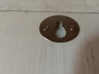 On the back of one of the pieces is rust around the screw of the hanging mechanism. Still functions! Approx Dimensions: Height: 6.25" Width 4.5" Thick: less than a cm