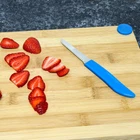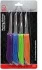Paring knives are great for a multitude of tasks, from slicing, to shaping delicate decorations Stainless steel blade won't rust even after multiple uses Blade is 2.5 inches in length Pack contains 4 paring knives Comes with assorted colors, purple, blue, green, and orange This Chef Craft Home Cutlery Set of 4 paring knives offers proven durability with multi colored molded handles for ease of clean up. 2.5 inch blade is single bevel precision ground for lasting sharpness, made from stainless steel alloy. These hard to find little kitchen knives are an exceptional tool for fruit and vegetable preparation. Use for road trips, tail gating events, camping, parties. house warming, food service, chefs, college students. Just like the one's in grandma's kitchen drawer.