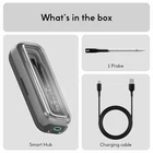 PERFECTLY COOK 3 FOODS AT ONE TIME: This set of 3 thermometers takes away the guesswork with individual time and temperature tracking for 3 different foods simultaneously. UNLIMITED WIRELESS RANGE: Long-range connectivity means you can remotely monitor cooking while chatting with friends and family and still get a perfectly cooked meal. QUAD SENSORS: Get maximum cooking accuracy from any angle with 3 internal and 1 ambient sensor. AUDIBLE AND VISUAL REMINDERS: Hear reminders from the charging hub speaker and get app notifications for real-time internal temperature updates, flip reminders, rest indicators, estimated time left, and more. HOURS OF USE WITH MINUTES OF CHARGING: This indoor-outdoor thermometer is ready when you need it with 40+ hours of use from a 10-minute charge or charge for 1 minute and get hours of use. SAFE FOR HIGH HEAT: Safe for temperatures up to 752°F for use in an air fryer, deep fryer, slow cooker, grilling, BBQ, oven, sous-vide, smoking, rotisserie, or convection oven thermometer. EASY-CLEANING: Waterproof and dishwasher-safe probes allow you to soak or toss in with other kitchen dishes for simplified cleanup. COOKING PRESETS: Get help setting optimal cooking times for various foods with choices for meat, cut, and doneness right on the App, or choose from hundreds of delicious recipes. PROTECT YOUR PROTEIN: Ultra-thin design keeps proteins intact and juices inside for perfectly cooked meat every time. SATISFACTION GUARANTEED: Purchase worry-free with a one-year limited warranty from .
