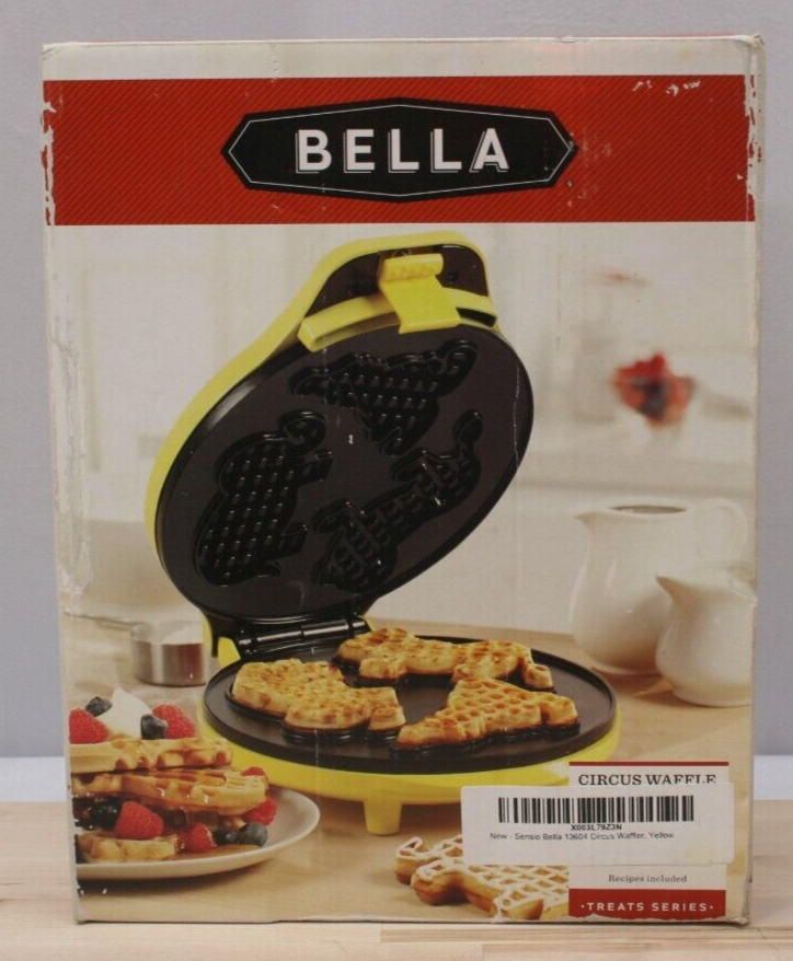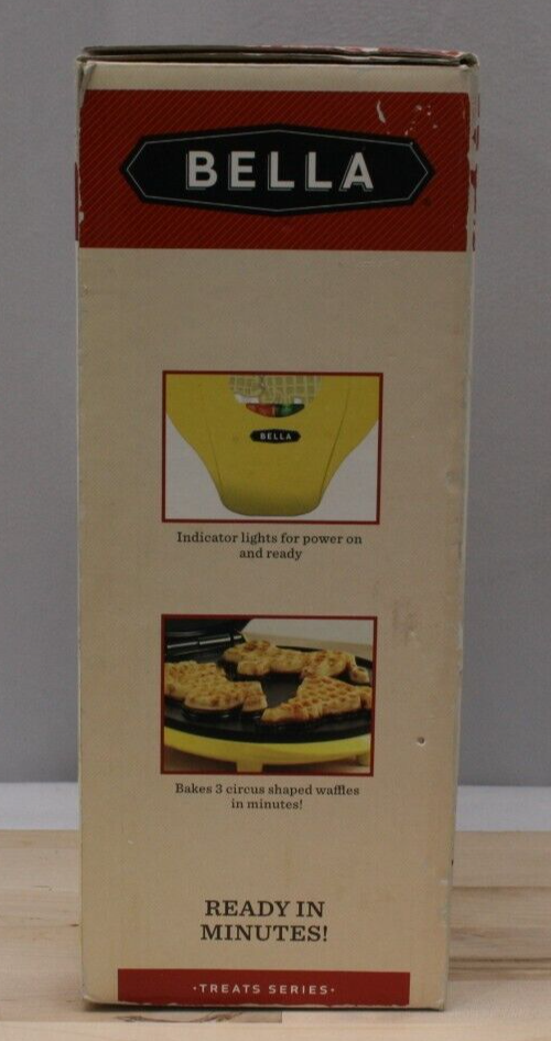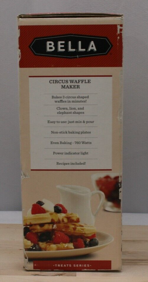 Sensio Bella 13604 Circus Waffle Maker Powerful 760 watt Waffle maker bakes 3 mini animal shaped waffles in just minutes Animal shapes on plates may vary Mini waffles slide right off of the non-stick plates making cleanup a snap Safely operate with cool touch handles Convenient power and pre heat indicator lights