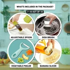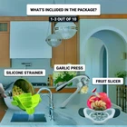 This set is not just a single gadget but an entire collection of 10 essential kitchen tools that will transform your cooking experience. Designed with versatility and efficiency in mind, this comprehensive set is a one-time purchase that will save you money by eliminating the need for separate gadgets. What You Get: 1. Garlic Press: Crush garlic effortlessly, saving you time and adding flavor to your dishes. 2. Silicone Strainer: Perfect for draining pasta or rinsing vegetables, it's an indispensable part of any kitchen. 3. Fruit Slicer: Make fruit preparation quick and easy, encouraging a healthy lifestyle. 4. Onion Chopper: Chop onions without tears, speeding up your meal prep. 5. Pizza Cutter with Server: Cut and serve pizza with one tool, adding convenience to your dining. 6. Veggie Peeler: A multi-blade peeler for peeling various types of produce with ease. 7. Dish Brush: Keeps your cookware and utensils clean and ready for use. 8. Banana Slicer: A quick and safe way to slice bananas, great for snacks or desserts. 9. Adjustable Measuring Spoon: Ensure precise measurements for baking and cooking. 10. Holder for Slicing: Protect your hands and ensure even slices with this handy tool. Key Benefits: Cost-Smart Kitchen Solution: With this 10-piece set, you can save money and space by avoiding the need for individual gadgets. It's a complete solution that keeps your kitchen storage organized. Superior Craftsmanship: Made from high-quality materials, these tools are durable and safe, ensuring they last through years of use. Guaranteed Satisfaction: This set comes with a money-back guarantee, giving you peace of mind about its quality and functionality. Innovative Designs for Modern Homes: Each gadget is thoughtfully designed to not only be useful but also add a touch of style to your kitchen. They make perfect gifts for new homeowners or anyone looking to upgrade their kitchen essentials. Upgrade your kitchen with this all-in-one set of 10 premium gadgets. It's the ultimate solution for efficiency, organization, and style. Essential Kitchen Set: This 10-piece set of kitchen essentials includes critical tools for every culinary task. Featuring a garlic press, silicone strainer, and more, it’s a complete kitchen utensil set designed to complement your kitchen organization needs. Superior Craftsmanship: Crafted from the finest materials, our kitchen gadgets set ensures durability and safety. Each piece is an essential component of any kitchen organizers and storage system, perfect for both new home essentials and seasoned kitchens. Cost-Smart Kitchen Solution: Save on both money and space with this comprehensive cooking utensils set. Ideal for apartment must-haves, it eliminates the need for separate purchases and keeps your kitchen storage streamlined and efficient. Guaranteed Satisfaction: Enjoy peace of mind with our kitchen accessories. This set comes with a money-back guarantee, ensuring that these household essentials meet your expectations for quality and functionality. Innovative Designs for Modern Homes: Each gadget, including the innovative onion chopper and fruit slicer, is thoughtfully designed not just for utility but also to enhance your kitchen decor and accessories, making them perfect home & kitchen gifts.