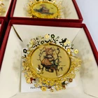Vintage: Yes Year Manufactured: 1987 Occasion: Christmas Set Includes: Ornament Type: Ornament Collection: Ornaments Material: Metal Theme: Christmas / Hummel Brand: Hummel Shape: Round Number of Items: 36 Product Line: Hummel Color: Gold Franchise: Hummel