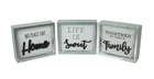 This set of rustic shadow box signs is the perfect addition to any country home, apartment, or cabin. To enhance your farmhouse decor in any setting, these pieces are made of galvanized finish metal frames with painted and raised wording, in phrases like "Life is Sweet", "No Place Like Home" and "Together We Make A Family" Hang them together as a group or on different walls to tie the whole look of the room together. This set of 6-inch high, 7.25-inch long, 1.75-inch wide farmhouse-style signs can be displayed on tables or walls in kitchens, living rooms, and even bathrooms. Our eBay Store About Us Add to Favorite Sellers Set of 3 Metal Framed Wooden Shadow Box Home and Family Plaques 7 Inches by 6 Inches OVERALL SIZE - Each Measures 6 Inches High, 7.25 Inches Long, 1.75 Inches Thick DURABLE MATERIAL - Crafted of Metal and Wood For Years of Maintenance Free Display FARMHOUSE DESIGN - With Raised Lettering For Contrast VERSATILE - Can Be Displayed on Tables, Counters or Walls GREAT GIFT - For Yourself or For Friends and Family This set of rustic shadow box signs is the perfect addition to any country home, apartment, or cabin. To enhance your farmhouse decor in any setting, these pieces are made of galvanized finish metal frames with painted and raised wording, in phrases like "Life is Sweet", "No Place Like Home" and "Together We Make A Family" Hang them together as a group or on different walls to tie the whole look of the room together. This set of 6-inch high, 7.25-inch long, 1.75-inch wide farmhouse-style signs can be displayed on tables or walls in kitchens, living rooms, and even bathrooms. Product Details Color Multicolored Height 6 Length 7.25 Weight 1.5 LB