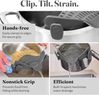 Kitchen Gizmo Snap N' Strain - Silicone Pasta Strainer Clip-On for Pots Gray Product Details Material: Silicone Color: Gray Brand: Kitchen Gizmo Style: Snap On Product Dimensions: 10"L x 5"W x 2.5"H Item Weight: 200 Grams Is Dishwasher Safe: Yes Manufacturer: Kitchen Gizmo Item Weight: 7.1 ounces Item model number: Kitchen Gizmo Is Discontinued By Manufacturer: No Fabric Type: Plastic Care instructions: Dishwasher Safe Assembly required: No Number of pieces: 1 Batteries required: No Included Components: Pouring Shield Plastic Hands-Free Straining: Clip on strainer easily snaps onto pots, pans, and bowls; keeping your hands free; great addition to your strainers and colanders collection; simple for draining pasta or veggies Compact and Space-Saving: Unlike traditional strainers, this collapsible strainer clips on and takes up minimal space. It’s the go-to solution for limited kitchen storage or camping trips Heat Resistant: Made from heat-resistant silicone; it can handle temperatures up to 400°F/230°C. This pot strainer stays strong, giving you a sturdy grip while draining hot foods without bending Compatible with Most Cookware: Specially designed to attach to most pots, pans, and bowls; this clip-on strainer for pots is versatile. Its universal design suits any kitchen task, big or small Durable and Dishwasher Safe: This pasta strainer is crafted from silicone; this kitchen tool is sturdy yet flexible, making draining easy. Simply rinse or pop it in the dishwasher for easy cleaning