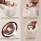 Romeo - Mini Electric Tea Kettle, BPA Free, 1.0L, 1100W, Hot Water Heater, Light Apricot and Brown CORDLESS KETTLE SPECIFICATIONS: Operating power: 1100 watts Dimensions: 8.1 X 6.0 X 7.4 inch Kettle capacity: 1.0 liter Cable length: 30 inch roughly WATER HEATER FEATURE: - Convenient indicator windows to view the water level - Automatic shutoff with boil-dry protection - Easy to storage with cord wrap - Removable filter in the spout - Easy filling with broad opening NOTE 1.Please read the instruction manual before use. 2.Before using the kettle for the first time, fill the kettle with cold water and boiled it twice without any additives and dry it naturally to avoid the normal plastic smell. 3. The body of the kettle will be hot when water boils, pls only grab the handle to pour hot water. 4.If rust or mineral deposits are detected from hard water at the stainless steel bottom, boil water on medium heat for 15 min. with 1 oz. of lemon juice. Rinse and dry. Offered 2-year warranty, for any defects in the materials or craftsmanship of any products, please kindly contact us and we will be glad to assist you. 【BPA-free】Still squeamish around the plastic kettle? We know that! So the BPA-free and Food Grade plastic is your healthy choice on the budget! The plastics that have been shown to cause cancer are used to make clear, hard containers or soft, flexible products. But, our kettles DO NOT fit into either of these categories 【Compact】Electric water kettle with 1.0-liter capacity suitable for 1-3 persons, wide-bottom design compared to its compact size for fast boiling (110V ~60Hz) 【Simple】The 120°broad opening lid folds out of the way for the easy filling. Easy to storage with cord wrap for compact space. Turn the kettle on and forget it with the automatic shutoff function. All of these are to serve your simpler life and save time for thinking big 【Safety】We always consider your safety as first. The handle leaves enough room to keep your hand away from body for your burn-resistant use! And the boil-dry protection can avoid the risk of incorrect utilization. The removable filter design in the spout is a very nice way to combat the very hard water which will leave large amount of limescale 【Clean & Furthermore】Mix 3 tbsp of vinegar or lemon with water, and leave 5-8 hours after boiling or overnight to clean those deposits or "rust" Away. If you have any questions about our products, you can always get in touch with us and we will be happy to help