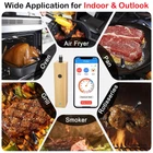 1. SUPER LONG RANGE: With a timer and temperature chart on the app page, you can monitor the real-time temperature from meters away. The smart base of the meat thermometer transmits signals up to 360ft through built-in intelligent monitoring. This kitchen thermometer beeps once it reaches the preset food temperature. You can have a hassle-free culinary experience, whether for BBQ outdoors or in your kitchen. 2. SMART MEAT THERMOMETER: This 100% truly wireless meat thermometer comes with a built-in Bluetooth repeater that extends the range. You can store and charge your probe, and it offers over 36-48 hours of continuous cooking per charge. It is great for electric barbecues, smokers, ovens, grills, frying pans, or sous vide cooking. 3. PROBE FEATURES: Our wireless thermometer has a stainless steel design, is water-resistant, and easy to clean. It can monitor internal meat temperature up to 608°F, with accuracy within ±1.5°F. 4. INTELLIGENT COOKING SYSTEM: The wireless thermometer comes with ten built-in recipes, such as beef, veal, lamb, and chicken. You can also add a new menu for customizing the temperature and receive alerts from the Bluetooth meat thermometer. Easily cook anything you want and get great results. 5. EASY TO USE: 1. Charge the booster for 10-15 minutes. 2. Download and launch the app. 3. Take out the probe and click the "+" sign in the app to pair the booster. Start making the meat dishes and set the desired temperature. Sit back, relax, and the app will notify you when your food is ready.