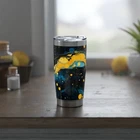 Crystal Paint Tumbler 20oz Minimize your plastic footprint with style. This 20oz tumbler is the perfect companion for road trips – it fits perfectly into car cup holders and the rubber gasket makes it spill-resistant on bumpier roads. The double-wall insulation eliminates condensation and keeps drinks at the right temperature for hours. Features: Stainless steel Double wall insulation Fits perfectly in car cup holder Spill-resistant sliding lid with a rubber gasket to prevent leaks Vibrant colors - The latest printing techniques provide bright and crisp colors Technology & Inks: Chill utilizes top-tier, cutting-edge technology to achieve full-wrap, top-to-bottom printing. Proprietary pretreatment methods enable the production team to achieve adhesion using UV-cured ink that is durable enough for years of use. Quality Control: A highly trained team of quality control engineers reviews prints at multiple stages of the production process to verify that only the highest quality products leave their facility. The detailed review process allows to accurately monitor and track issues over time to eliminate consistent problems with artwork, manufacturing flaws, or workflow discrepancies. Packaging Control: Bubble-wrapped bags protect the printed product from any possible damage during transit, and durable cardboard boxes provide an additional layer of insurance to preserve the items from the dock to your doorstep. Care Instructions: Hand wash only. Do not microwave.