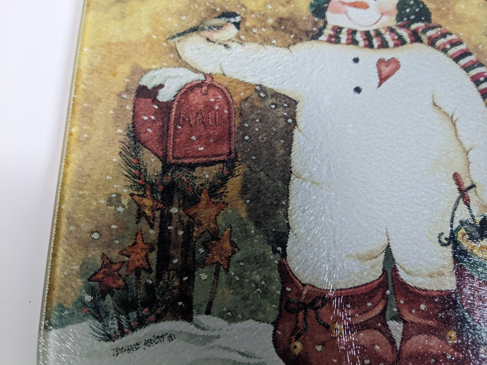Tempered glass cutting board Snowman / winter scene 10 x 8 No cracks or chips in good condition