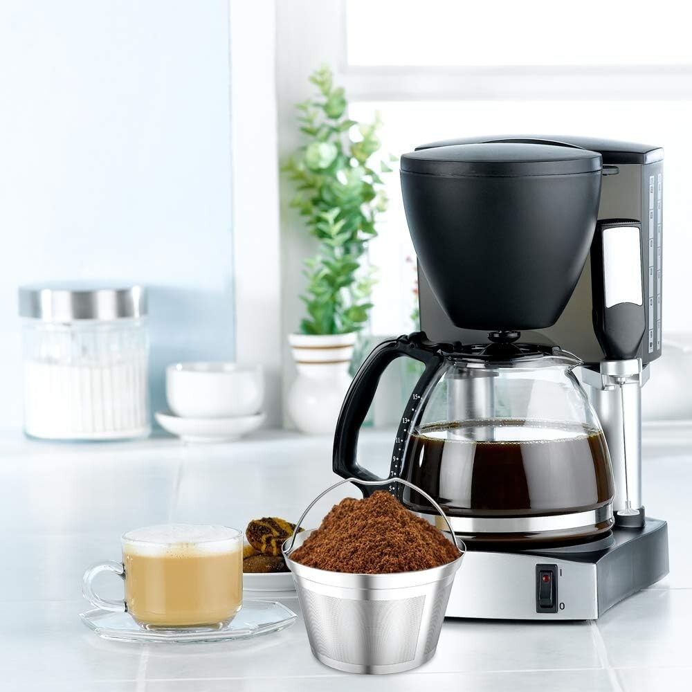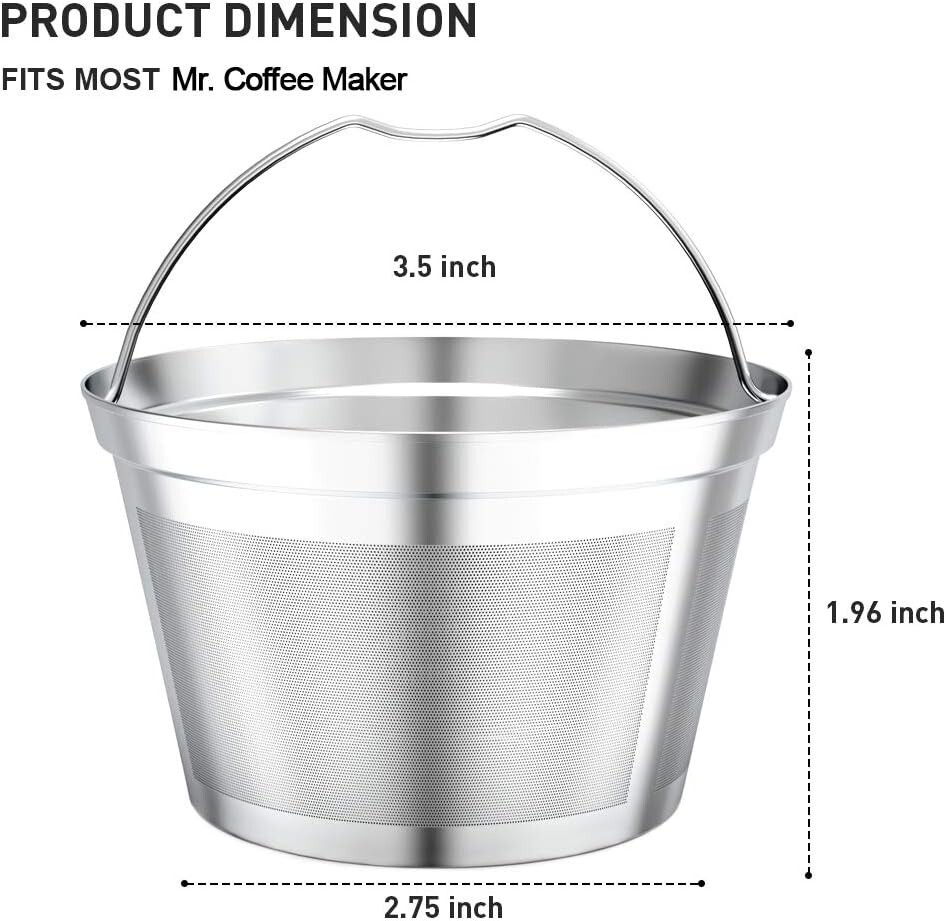 Reusable 4-5cup basket Replacement Coffee Filters Stainless Steel Permanent cof Color: Mr.coffee maker Material: Stainless Steel Shape Basket Number of Pieces: 1 Unit Count: 1 Count Reusable Mr.Coffee 4 or.5 or 6cups basket filter can replace the paper filters.Reduce wasting and avoid spending much more money on the coffee filter. Never deformed and cracked. Permanent coffee filter was made of food grade stainless steel and with flat bottom. Safe and hygienic.No Rusting and Corrosion. Reusable Mr. Coffee basket filters is easy to use and cleaning under running water. Mr.Coffee maker and brewer 4 cup reusable filter is fit for Mr.Coffee maker and brewer.Black & Decker Gevi AmazonBasics Capresso Basket-Style Coffee Maker Filters