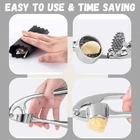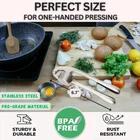 Premium Garlic Press Set - Easy to Squeeze Ergonomic Handle Silver Product Details Material: Stainless Steel Color: Silver Brand: CASA KITCHEN Product Dimensions: 6.7"L x 1.6"W Item Weight: 8.32 ounces Is Dishwasher Safe: Yes Manufacturer: CASA KITCHEN Item Weight: 8.3 ounces Country of Origin: China Item model number: Garlic Press Set ✅ Maximal Amount with Minimal Pressure: The garlic press stainless steel has 37 small spikes that match up with the holes in the chamber ideal for maximizing efficiency of garlic pressed, whether the unpeeled or peeled cloves, easily crush each clove and push the garlic through fine holes to produce a ready to use paste, while the peels conveniently remain inside the inner chamber ✅ Easy to Use & Clean: Avoid the stress by selecting a garlic mincer tool with an ergonomic, streamlined design with built-in studs to extract more paste within seconds. It's perfect for commercial and home kitchens use. Simply rinse your garlic and ginger press tool under running water or place it in the dishwasher for thorough cleaning. We recommend rinsing the garlic crusher right after use to avoid residual pulp and fibers hardening up. The included cleaning brush for some extra help ✅ Built to Last: Zinc stainless steel is an ideal material for garlic presses, it is strong enough to easily and perfectly press through garlic. Our premium quality stainless steel garlic press is constructed from food-grade, rust-resistant materials meant to be among your favorite kitchen gadgets for years to come ✅ Multi-Purpose: This professional garlic squeezer is perfect kitchen gadget for pressing fresh garlic or ginger into a fine paste to mashed potatoes, sautéed shrimp, meatballs, salad dressings, or sauces, also available for other foods, like ginger, leafy herbs, chilies, seeds, and soft nuts., etc. This kitchen must haves is also a perfect kitchen essentials for new home ✅ Ideal Gift: Casa Kitchen stainless steel garlic press set makes a perfect gift on Christmas, Wedding Day, Mother's Day, Housewarming or more, especially for cooks lovers. If at any point you decide you are not completely satisfied with your set, just contact us and we will make it right