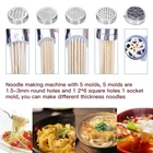 Stainless Steel Manual Noodle Pasta Maker Spaghetti Press Kitchen Press Machine Simply unscrew and change the moulds discs then you can make spaghetti fettuccine pasta noodle by yourself and it is easy to unscrew all the components for hand washing By using a simple turning motion that you can instantly change regular dough into different sizes of noodle or juicing the fruits with the handle, work smoothly and durable Helpful kitchen tool for making noodle, pasta and squeezing the fruits into juice; As creative gift for your cooking friends, mother and even a chef, cooker Control the proper mix of water and flour when you make a dough in order to avoid noodle breaking or sticking and exerting the machine's function to the best extent 100% Brand new and high quality Main function: Make dilicious noodle and extract juice Easy operation, save time Natural and harmless, tasteless and non corrosive Can be cleaned by water and keep as bright as when new Flat noodle width: 5mm; Round noodle diameter: 1mm/2mm/3mm Making noodle: 1. Knead dough with water to make it soft(Add some edible oil would be better) 2. Unscrew the cover and put the dough, vegetable or have cut fruits into the drum, then screw the handle and noodle or juice will come out 3. Put the bottom of machine close to water for easy coming out 4. After usage, disassemble it and wash with water Color: As shown in the picture Material: Mainly Stainless steel Noodle machine height: Approx. 18cm; Drum height: Approx. 14cm; Diameter: Approx. 6cm; Inner hole:Approx. 5cm Included: 1 x Noodle Press Machine 5 x Noodle Moulds operate :Twist the rotation rod after fill a soft dough inside the main cylinder of the noodle press, then the noodle will come out from the mould; Help you making thin, middle, thick paste, udon, spaghetti, fettuccine and etc A useful home kitchen noodle press maker, helping you to make different size of noodle and it can also be used for little lemon, lime, citrus pressing Package includes: 1 * Noodle maker 5 * Module ergonomic grip on the rotation rod and a stainless steel holding handle, one hand to hold the middle handle and the other hand to rotate the rod; Easily squeezing dough and use less effort Simply unscrew and change the moulds discs then you can make spaghetti fettuccine pasta noodle by yourself High Quality and Brand New Easy to operate and wash with water Perfect for home or restaurant use Natural and harmless, tasteless and non corrosive