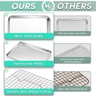 Toaster Oven Pan with Cooling Rack Set, 10.5’’ x 8’’ x 1’’ Stainless Steel Compact Toaster Oven Small Baking Pan Tray with Mini Grid Rack, Non-Toxic & Heavy-Duty, Dishwasher & Oven Safe HEALTHY & STURDY: Toaster oven pan with cooling rack are made of pure stainless steel without any toxic or chemical materials, No worry about toxic coating flaking off into your food, No rusty and deformation resistance, With thick gauge and sturdy construction for using longer time TOASTER OVEN TRAY: The broiler pan is 10.5’’ x 8’’ x 1’’, Fits for most toaster oven, Smooth edges without sharp spot prevents from hurting your hands and pick up comfortably, 1 inch deep sides with roll edge helps avoiding food juice or grease spilling out, Keeps your oven clean COOLING GRID RACK: The 9.7’’ x 7.3’’ cooling rack with dense lines and 0.6” small grid spaced pattern to avoid the small food falling, 4 thick supporting feet raised the entire rack up by 0.75 inch, Allows air to circularly flow for baking food better, Welded firmly and 2 cross bars strengthen the stability of the rack DISHWASHER SAFE: Mirror polished surface reduces the possibility of sticking on the pan, Allows the food be released easily without sticking, Makes cleaning task more effortless, Both broiler pan and wire rack are effortless clean and dishwasher safe to save your labor and time MULTI-USE: A great baking pan with rack set fits for small amount of cookies / breads/ meats / vegetables making, Helping you to deal with the personal baking tasks easier in the daily use, The baking rack not only be used with baking pan, but also can hold and cool the food separately after baking 10.5’’ x 8’’ x 1’’ Stainless Steel Toaster Oven Pan Tray Small Baking Pan with Cooling Grid Rack Wire Set of 2, are made of pure stainless steel, No toxic leaching or chemical chips fall into your food, Healthy for daily use. Not only ideal for baking cupcakes, vegetables, bacons, but also be used as serving tray, cookie tray, cooling rack and etc. Both the broiler pan and rack are dishwasher safe. Specification: Material: Pure Stainless Steel Craft: Mirror Finish, Sturdy Construction, Smooth Edge, 1 inch Deep Side Features: Healthy, Easy to Clean, Dishwasher Safe, Oven Safe Dimension: Pan: 10.5’’ x 8’’ x 1’’ Rack: 9.7’’ x 7.3’’ x 0.75’’ Why Choose Stainless Steel Toaster Oven Pan Tray with Rack? 1. Non-Toxic - Made of pure stainless steel without any toxic substance into your food, Healthy for daily use. 2. Smooth - Shiny and attractive mirror finish, Roll edges and round corners to comfortably hold and transfer conveniently. 3. Sturdy- Heavy duty and rust resistance, Feel solid and not easy to smash. 4. Baking Evenly - 4 x 0.75 inch supporting feet raise the rack up for better air circulation to make the food baked evenly. 5. Multipurpose - Baking trays and racks not only be used together, but also separately used. For baking cookies, jelly rolls, meats, vegetables, Racks for cooling/ decorating food. 6. Easy to Clean - All the pan and rack are dishwasher safe. Using Instruction: 1.Please wash the pan and rack with warm soapy water before your first using. 2.Please hand dry them after cleaning, stored in dry place for durability. 3.Please avoid sharp and rough tools to scratch the shiny surface of the pan. 4.Dishwasher safe. Shipping We ship within Three business days of payment, usually sooner. We use a selection of shipping services such as UPS, FedEx, USPS etc. We only ship to the lower 48 states, no APO/FPO addresses or PO Boxes allowed. Local pickups and combined shipping options are not provided at this time. Return You can return a product for up to 30 days from the date you purchased it. Any product you return must be in the same condition you received it and in the original packaging. Please keep the receipt. Payment We accept payment by any of the following methods: PayPal Please pay as soon as possible after winning an auction, as that will allow us to post your item to you sooner! Feedback Customer satisfaction is very important to us. If you have any problem with your order, please contact us and we will do our best to make you satisfied. Contact Us If you have any queries, please contact us via ebay. We usually respond within 24 hours on weekdays. Please visit our eBay store to check out other items for sale! Thank you for shopping at our store.