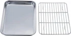Toaster Oven Tray and Rack Set, 9.3’’ X 7’’ X 1’’, Stainless Steel Toas HEALTHY - TeamFar toaster oven tray is made of 18/0 stainless steel, Wire rack is made of 18/8 stainless steel, No any toxic or chemical coating, Rust free and healthy for everyday use CRAFT - This broiler pan has smooth rolled edges without sharp spot, Roasting rack is strongly weaved with dense lines to avoid food falling through, Long lasting for many years EASY CLEAN - Full sides all around avoid sauce flowing everywhere to keep your oven neat, Smooth mirror finish make cleaning a breeze, Both parts are dishwasher safe WIRE RACK - The grill rack fits nicely inside the toaster oven pan, Lifts food above juice to allow hot air circulating to bake evenly, This cooling rack can be separately used for cooling food SIZE - Tray 7’’x9.3’’x1’’, Rack 6.25’’x8.75’’x0.5’’, Fits most home toaster ovens, Perfect size for controlling your food proportion, Used to bake or broil like chicken wings, burger, sausage, sliced bread, and chips, etc. Product Description TeamFar Stainless Steel Toaster Oven Tray and Rack Set of 2 Teamfar Toaster Oven Tray and Rack are made of high quality stainless steel without any other material or coating, which is healthy and safe for your daily baking and broiling. No more toxic leeching or chemical chips fall into your food unconsciously. Both the oven pan and rack are dishwasher safe to save your labor after using. This bakeware set is designed compact size to fit most mini toaster ovens and perfect for baking bacon, chicken wings, sausage, vege, etc. A great replacement to aluminum and Teflon pans! USER INSTRUCTION 1.Please wash the set with warm soapy water before your first using. 2.Please clean the tray with soft dishcloth, avoiding scratching the shiny surface. 3.Please clean and dry the set after using, stored in dry place. Healthy Use This toaster oven pan is made of pure stainless steel without any toxic chemical coating. NO worry about coating flaking off. Healthy for daily baking. Smooth Roll Edge Smooth roll edge with no sharp spots for comfortable grip. Thick gauge and strong construction for serving years. Feel sturdy in your hand. Smooth Mirror Finish Superior mirror finish keeps shiny and helps release easily. Cleaning is a breeze. High rust resistant and dishwasher safe to save your busy time and avoid hassle. Dense Parallel Lines Wires welded firmly to steadily support the food. Dense wires to prevent food sliding through, help the air circulate all around the food while baking, facilitates 360 angle evenly baking and crisping. Easy Clean & Dishwasher Safe Smooth mirror finish surface for less-sticking and easy releasing, Makes cleaning a breeze even by hand washing. Dishwasher safe to save your labor and time. Smooth Roll Edge & 4 Raised Feet This cooling rack perfectly fit in the toaster oven tray. 4 raised feet can keep the food off the bottom of the pan. Smooth roll edge without sharp spurrs hurting your hands. 7.0 "h x 9.3 "h x 1.0 "h. Weight: 13.28 oz Item model number 8541905117 Color Silver Material Stianless Steel Is Dishwasher Safe Yes Item Weight 13.28 ounces Size 9.3 x 7 x 1inch Is Discontinued By Manufacturer No Product Dimensions 9.3"L x 7"W x 1"H