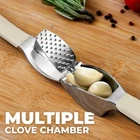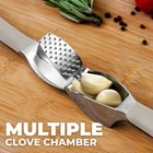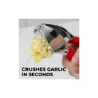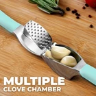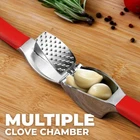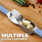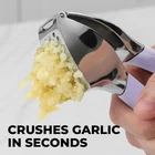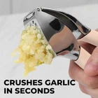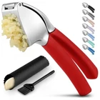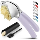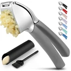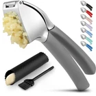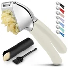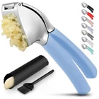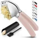 About this Garlic Mincer Tool SIMPLE TO USE & BUILT TO LAST: Our premium quality garlic press is constructed from food-grade, rust-resistant materials meant to be among your favorite kitchen gadgets for years to come. This garlic and ginger mincer is designed with built-in studs to extract more paste within seconds. It is great for both professional and home kitchens. PEEL AND CRUSH EFFORTLESSLY: No more strong garlic odor or sticky residue lingering on your hands, as our silicone peeler does the job for you. Insert a clove inside the silicone and roll the sleeve vigorously over the counter with your palm to get the skin off the clove. Then use the ergonomic handle of the garlic press mincer to crush cloves in one go by applying minimal effort. EASY TO CLEAN: Simply rinse your garlic and ginger press tool under running water and use the included cleaning brush to get rid of any garlic bits or place it in the dishwasher for a quick clean up. Can be washed on the top rack dishwasher but hand wash is suggested. We recommend rinsing the garlic crusher right after use to avoid residual pulp and fibers hardening up. MULTI-PURPOSE TOOL: Don?t have a mortar and pestle? Fill the garlic press tool with coriander seeds, cumin seeds, or peppercorns when any recipe calls for ?freshly cracked? or ?coarsely ground? seeds. This garlic presser can also be used as a ginger press tool or to crush onions or nuts. Simply fill the chamber and squeeze to crush.