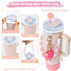 Specification: Color: white, purple, pink Material: silicone, alloy Packaging Includes: weave handle strap x 1 silicone ring x 1 water bottle boot x 1 flower straw cover x 1 silicone straw cover x 1 round leak stopper x 1 square spill stopper x 1 flower charms x 2 plush pendant x 1 heart hook x 1 Features: Nice gift for girl's Stanley cup. Bought this accessories for 10 year old girl's new Stanley! If you are into the boho aesthetics this bohemian Stanley accessories is for you! Love the color, easy to hold, silicone fits perfect. This is the perfect way to decorate your Stanley. The handle attachment is so strong and doesn't budge, neither does the key chain. This Stanley accessories set makes carrying the cup around easier. The set came with many different accessories. The straw cover is easy to remove and clean. The bottle handle strap is prefect to hold tumbler since tumbler doesn't have a handle to hold onto. This also makes a great gift for those Stanley cup fanatics. This set comes with so many pieces. The crochet strap looks high end. It is so pretty and feminine. The whole set is a pretty pink. Like how feminine this set is with the pink flower charms, flower straw topper and flower strap. Everything is well made and it looks great on the Stanley 40oz tumbler. This Stanley accessory set is adorable! It makes a great gift, especially for young girls! It comes with a silicone boot, a braided carrying handle, little charms, and straw cover. It also has a little heart sticker you can stick to your Stanley to clip the charms on if you wish, and comes with a cute little puff ball. Young girls love to accessorize and they definitely love this set! All pieces fit the 40oz Stanley Cup perfectly. Stanley Cup Accessories - You will get 1pcs weave handle strap, 1pcs silicone ring, 1pcs water bottle boot, 1pcs flower straw cover, 1pcs silicone straw cover cap, 1pcs round leak stopper, 1pcs square spill stopper, 2pcs flower charms, 1pcs plush pendant, 1pcs heart hook. A total of 11pcs, not include cups. Makes Carrying Stanley Easy - Come with a bohemian woven handle strap and silicone safety ring, super practical to carry your water bottles everywhere when outdoor. Free your hands and enjoy your time! No More Leak - The straw cover cap prevents drinks from spilling out of the straw; the round leak stopper improves the seal and ensures drinking air can get in; the square anti spill stopper creates a seal and secures the straw. This simple set not only creates a seal but also holds the straw in place. High Quality Material - The straw cover cap is made of high-quality silicone, they are sturdy, reusable and washable. Perfect for Stanley 30/40 oz tumblers and other cups with 0.4-inch straws. The boot is made of safe silicone to protect the bottom of the water bottle from scratches and dents. The Popular Cup Set for Stanley - Our cup set features popular floral elements paired with charming pompoms, which will be the most dazzling mug wherever you put it. This also makes a great gift for those Stanley cup fanatics.