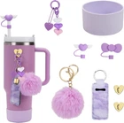Fast Shipping On All Items 30 Days Money Guarantee Customer Support Excellent Service 100% Satisfaction Satisfaction Guaranteed Stanley Cup Accessories Set, 1 Pcs Lipstick Holder, 1 Pcs Silicone Stanley Cup Boot, 2 Pcs Silicone Straw Cover, 2 Pcs Stanley Charms for Stanley Cup 40Oz & 30Oz Tumbler. (Lilac) Specification Item model number -HEART-02 Style Modern Number of Items 1 Material Silicone, Plastic Capacity 2.5 Pounds Pattern Solid Country of Origin China Embellishment Yes, there are embellishments, but the specific type is not mentioned in the provided details. Unit Count 1.0 Ounce Product Dimensions 2.95"W x 1.55"H Package Type FFP Age Range (Description) Adult Specific Uses For Product Use with Specific Tumbler Brands Included Components Keychain Reusability Reusable Item Weight 4.6 ounces Material Feature Insulated Occasion Christmas, Halloween Special Feature Non-Slip Material Type Free BPA Free Color Lilac Shape Round Recommended Uses For Product Travel Product Care Instructions Hand Wash Only Size Universal 1.55 "h x 2.95 "h. Weight: 4.6 oz Item Description Boot Protection: The silicone boot for Stanley 40oz&30oz tumbler can protect your cup from collision, scratches or drops, and will not make a noise when placing it on the table. It include air hole on the button, you can easy to put on and take it off Tumbler Charms: The tumbler charm set designed for girls. With lipstick holder, pompom ball, straw covers, heart keychain charm. It’s convenient for girls to reprint the lip in rush time or after sports Easy to Use: With easy hook, you can just stick on your Stanley bottle and hang whatever you want to DIY your bottle or freely match them to your satisfaction.(Package Included two hooks) Protection & Decoration: Silicone boots can protect your bottles against accidental scratches and avoiding noisy during use. The girly charm set add more fun to your water bottle Package Include: 1Pcs Heart Keychain, 1Pcs Pompom, 2Pcs Silicone Straw Cover, 1Pcs Lipstick Holder, 1Pcs Silicone Stanley Cup Boot, 2Pcs Heart Hook Product Description About us We offer the best prices around on high quality products. Our E-store includes media such as books, movies, music and games while offering electronics, toys, sporting apparel, clothing, tools, general home, garden items and more. Shipping We are always working hard to ensure your package arrives as soon as possible. Please understand that some factors like weather, high postal traffic, and the performance of shipping companies are outside of our control. We offer free shipping to the lower 48 states and ship within 2-3 business days of payment, usually sooner. We do not accept P.O. Boxes. Please provide a physical address. For shipping outside of the continental USA, we only use eBay's Global Shipping Program.The item is shipped to KY and then sent to the rest of the world. International customers are responsible for all duties and taxes. Continue to check out to calculate costs for shipping the item to your country. Messages regarding eBay's Global Shipping Program MUST be directed at eBay EXCLUSIVELY. Returns We offer a 30-Day Return Policy on items in which you are not completely satisfied with. You have the option of a full-refund or an exchange of the item. No returns are available on items shipped outside of the USA Satisfaction We try over very best to make sure every customer is completely satisfied. If there's a problem, message us! We're happy to help. Payment Options Shop With Confidence