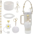 Charming Stanley Cup Accessories Set - Enhance & Protect Your Stanley Cup in Style Elevate your Stanley cup experience with our Charming Stanley Cup Accessories Set , designed to add both style and functionality to your favorite drinkware. This must-have set offers practical solutions with a fashionable touch, making it a perfect complement to your Stanley cup. Key Features: 🌸 Unique Design: Featuring an advanced silicone safety ring and a stylish bohemian woven handle strap, this water bottle carrier ensures durability while adding a trendy, floral-inspired look. It's more than just a carrier—it's a statement piece! 🛡️ Protective Stanley Boot: Protect your water bottle from scratches, dents, and wear with our protective Stanley boot . Designed to fit most 8-40 oz bottles, including Stanley cups, Simple Modern tumblers, Hydro Flask wide-neck bottles, and other lipped bottles. 🏅 Premium Quality Materials: Made with food-grade silicone , our straw covers fit Stanley 30/40 oz tumblers and other cups with 0.4-inch straws. Durable, reusable, and easy to clean, these covers are a must-have for maintaining your drinkware. 🎁 Complete Accessory Set: The set includes everything you need: 1 x Water Bottle Handle Strap 1 x Protective Water Bottle Boot 1 x Silicone Straw Cover 1 x Pompom Ball 1 x Daisy Keychain 1 x Heart Hook (Please note: cups are not included .) Why You'll Love It: This Stanley Cup accessory set not only offers top-tier protection for your bottle but also adds a personal touch with fun and fashionable extras. Perfect for gifting or upgrading your own Stanley cup! Get your Charming Stanley Cup Accessories Set today and enjoy your drinkware with style and protection!